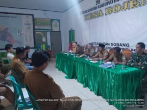 Babinsa Koramil Cigeulis Hadiri Monitoring dan Evaluasi Kecamatan Sobang di Desa Bojen