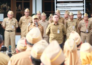 Dalam Apel Pagi Di Lingkungan Pemkab, Bupati Pemalang Mengajak Seluruh Aparatur Sipil Negara (ASN) Untuk Membantu Korban Bencana Alam Di Sumatera
