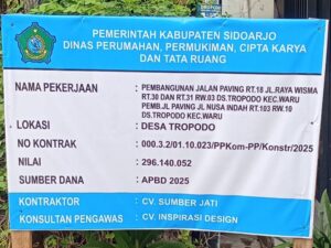 Dugaan Proyek ‘ Siluman ” Paving Block Jalan Raya Wisma Tropodo