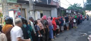 Warga yang hadir mengantri kebanyakan berasal dari lingkungan RT sekitar dan pengguna jalan yang sedang lewat dari berbagai asal.