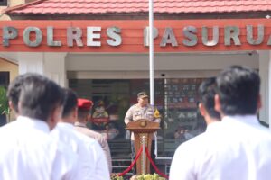 Kegiatan dipimpin langsung oleh Kapolres Pasuruan, AKBP Jazuli Dani Iriawan, didampingi Wakapolres, para Pejabat Utama, Kapolsek jajaran, serta seluruh anggota Polres Pasuruan.