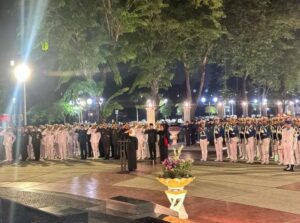 Kepala Staf Koarmada II (Kaskoarmada II) Laksma TNI Agam Endrasmoro, menghadiri Apel Kehormatan dan Renungan Suci (AKRS) di Taman Makam Pahlawan (TMP) 10 November Surabaya, Senin (10/11) dini hari. Kegiatan yang digelar tepat pukul 00.00 WIB tersebut dipimpin oleh Gubernur Jawa Timur Khofifah Indar Parawansa dan diikuti oleh unsur Forkopimda Provinsi Jawa Timur, TNI, Polri, serta berbagai elemen masyarakat.