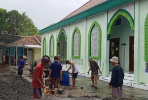 Dewan Kemakmuran Masjid (DKM) dan relawan masyarakat beserta jamaah melaksanakan kegiatan secara gotong royong membuat akses jalan lingkungan masjid Al barokah desa Losari kecamatan Ampelgading Kabupaten Pemalang.