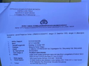 BANYUWANGI, tnipolrinews.com – Setelah tiga puluh tahun menyimpan sakit hati dan malu akibat fitnah yang merusak nama baiknya dan keluarga, Ketut – yang akrab dikenal sebagai “Meme” oleh warga Kelurahan Penataban, Kecamatan Giri, Banyuwangi, akhirnya mengambil langkah Bersama sang suami, Guntur, ia melaporkan kasus pencemaran nama baik tersebut ke Polresta Banyuwangi, didampingi oleh dua kuasa hukum, Advokat Peter dan Advokat Supriyadi. laporan polisi Nomo: STTLPM/460/Xll/SPKT/2025) tanggal 23 desember 2025.