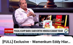 Berkenaan KUHP dan KUHAP yang baru diundangkan tersebut masih menjadi pemahaman yang kontroversi dimasyarakat luas, untuk menjawab tersebut coba kami ketengahkan satu diantara penjelasan Profesor Edy. Dr. Edward Omar Syarif Hiariej, S. H diacara ( Full) Exclusive – Wamenkum Eddy Hiariaj Bahas Kontroversi KUHP Baru dengan Houst pemantik Advokat/ Pengacara Kondang Hotman Paris Hutapea, saya langsir/ salin pada pukul 2 25 Wib Rabu 3 Februari 2026.