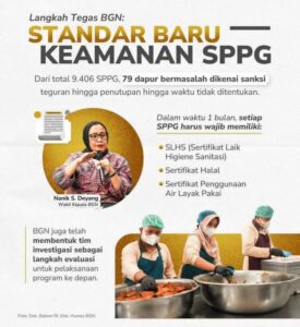 “Kita mendukung langkah BGN. Pemberlakuan ketiganya harus dipenuhi SPPG dalam waktu 1 bulan,” papar pria kelahiran Kota Surabaya ini.