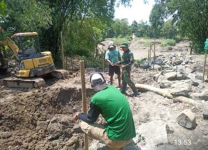 Kegiatan pembangunan dilakukan secara gotong royong, melibatkan anggota TNI dari Kodim 0711/Pemalang bersama warga setempat dengan penuh semangat kebersamaan. Terlihat para prajurit dan masyarakat saling bekerja sama, mulai dari pengangkutan material hingga proses konstruksi.