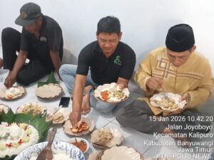 Di wilayah penyimpanan kayu Unit Tahunan Pemeliharaan dan Pemanfaatan Kayu (TPK) Utara Perhutani kacamatan kalipuro,Kabupaten Banyuwangi, tepat pada awal bulan Januari 2026, telah diselenggarakan acara syukuran yang penuh makna. Kegiatan yang langsung dipimpin oleh Kepala Unit TPK Utara kaliro, suprayoto, merupakan wujud rasa syukur yang disampaikan kepada Allah SWT atas berbagai pencapaian dan berkah yang telah diperoleh, sekaligus sebagai momentum untuk mempererat tali silaturahmi antara seluruh jajaran karyawan, serta memperkuat hubungan sinergi dengan masyarakat sekitar wilayah operasional, Jumat (16-01-2026).