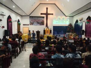 Adapun tema dalam giat ibadah hari ini adalah: Allah Hadir Untuk Menyelamatkan Keluarga ( Matius 1: 21-24) yang di bawakan oleh Pdt. Ibu Desvita Bandagan, S.th.
