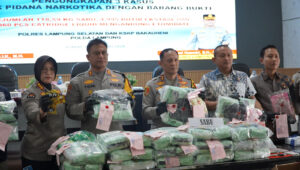 Lampung selatan — Kapolda Lampung Irjen Pol Helfi Assegaf merilis pengungkapan tiga kasus tindak pidana narkotika hasil kerja Satuan Reserse Narkoba Polres Lampung Selatan bersama KSKP Bakauheni dalam konferensi pers di Mapolres Lampung Selatan, Jumat (6/2/2026) pukul 09.00 WIB.