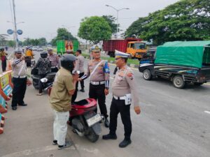 Petugas menyisir area jembatan untuk memantau arus lalu lintas sekaligus memberikan edukasi langsung kepada pengguna jalan.
