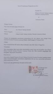 Dimana Ketua Kwartir Cabang (KWARCAB) Kabupaten Lampung Selatan periode 2022 – 2027, Hj. Winarni Nanang Ermanto telah resmi mengundurkan diri sejak 25 Februari 2025 yang lalu.