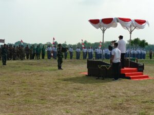 Wakil Bupati Nurkholes, SH., M.Si selaku Inspektur Upacara dan Danramil 13/Pulosari Kapten Inf Nurma Firdaus selaku Komandan Upacara.